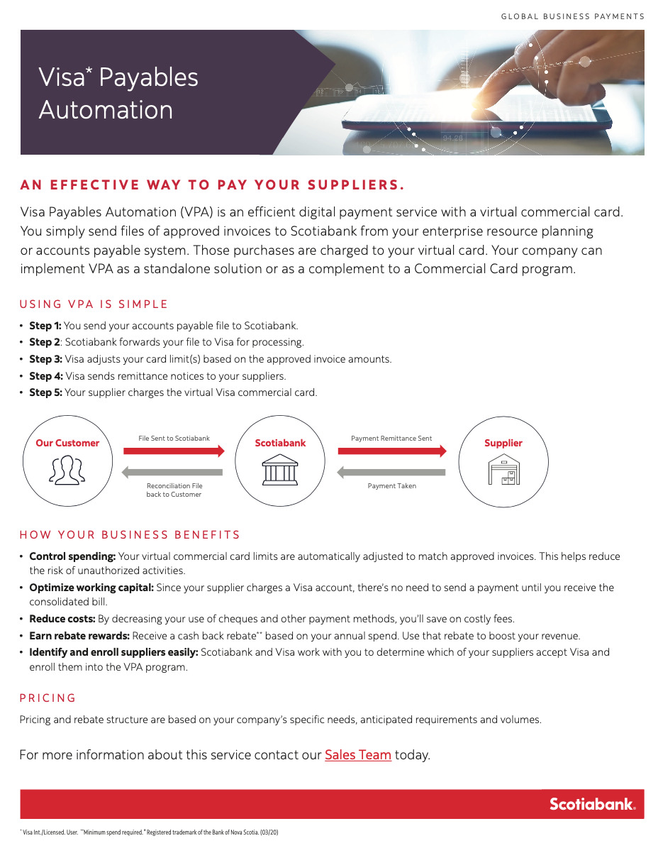 Visa Payables Automation could help certain customers generate thousands of dollars in revenue and increase operational efficiencies. The problem was – not enough customers knew about this product. To help address that challenge we produced a 1-page ad for an industry magazine, and created a sales sheet to help business advisors discuss the benefits of this powerful product.